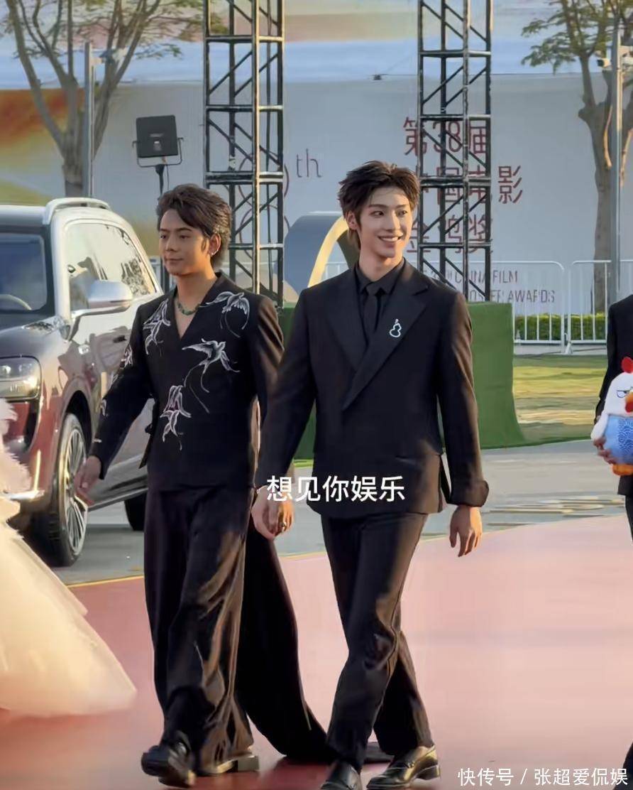下午学员们都走上了金鸡闭幕式的红毯,丁真换了一套印有春燕图案的国风礼服,衣身后面带拖尾,与飞扬的发丝相呼应。身高本就不够高,被设计繁复的礼服衬得他更显瘦小,跟他同行的颜安在《九重紫》里被嘲丑男,站在丁真旁边却显得眉清目秀了。