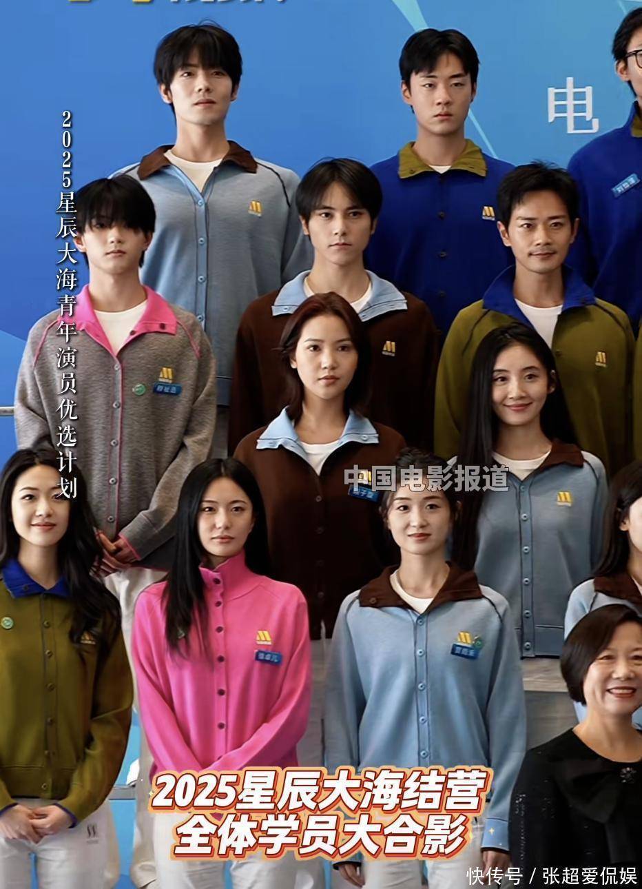 结业的时候,官方组织40位学员拍了两次大合照,一张是穿的节目发放的印有电影频道logo的统一针织衫。镜头扫过,发现今年没有什么大咖,最让大家眼熟的是几位童星,曹骏,蒋依依,石云鹏等,还有靠脸杀进娱乐圈的丁真。